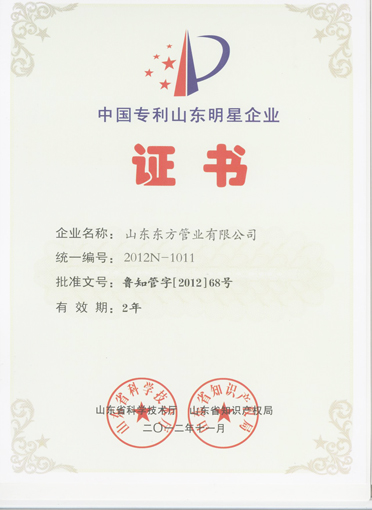 山東東方管業(yè)有限公司被評為中國專利山東明星企業(yè)